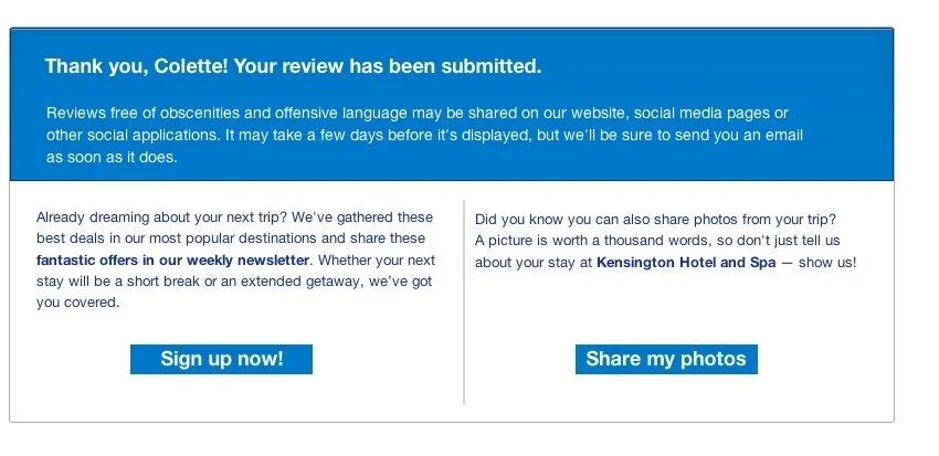 The Reviews team was tasked with increasing customer testimonials, as these were an important tool for boosting brand loyalty, image, engagement. Tapping into the aspirational reasons why people plan trips, and the eagerness to share their pics once they’re back, is what gave customers the needed incentive to interact with this.